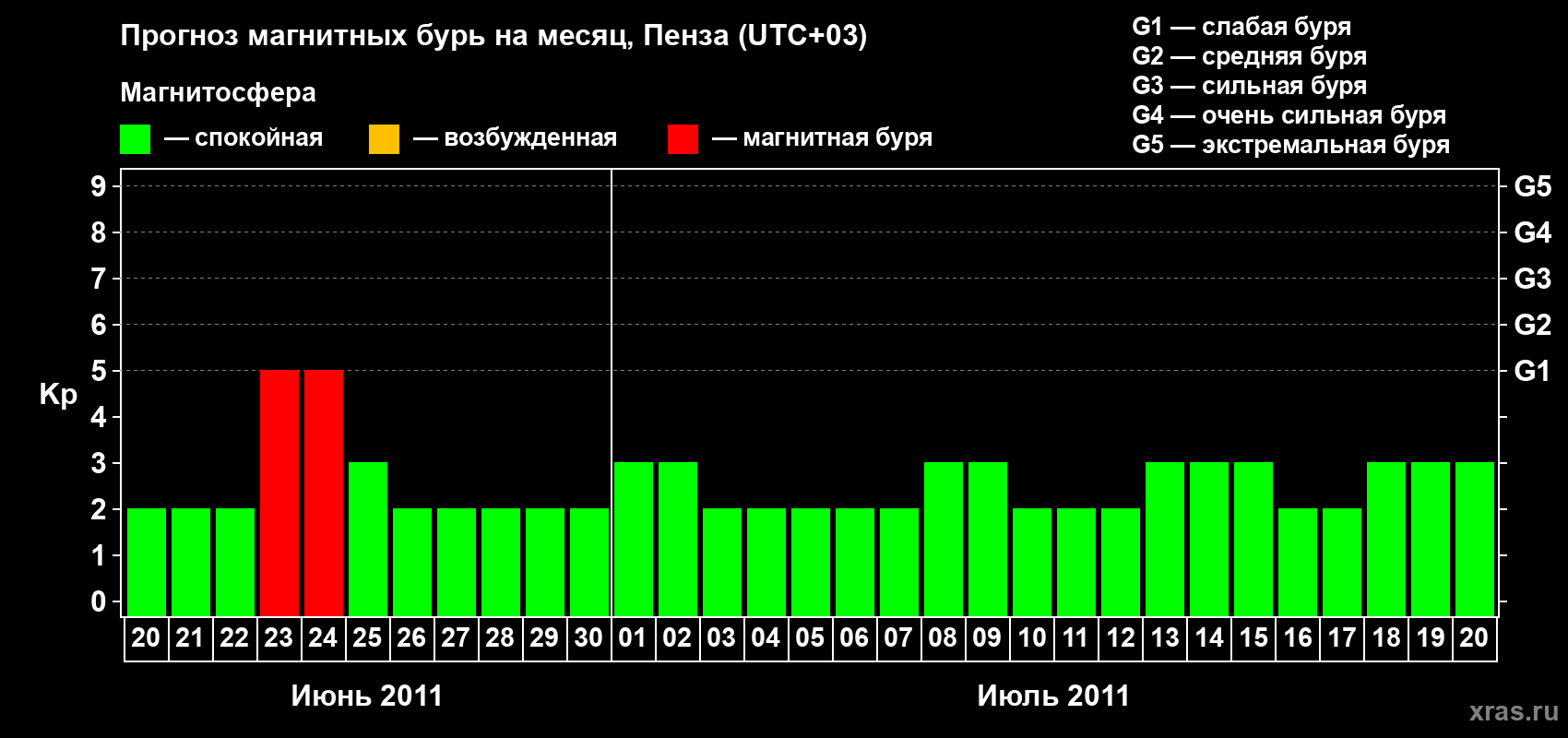 Прогноз магнитных бурь в Пензе — 20 июня 2011 года