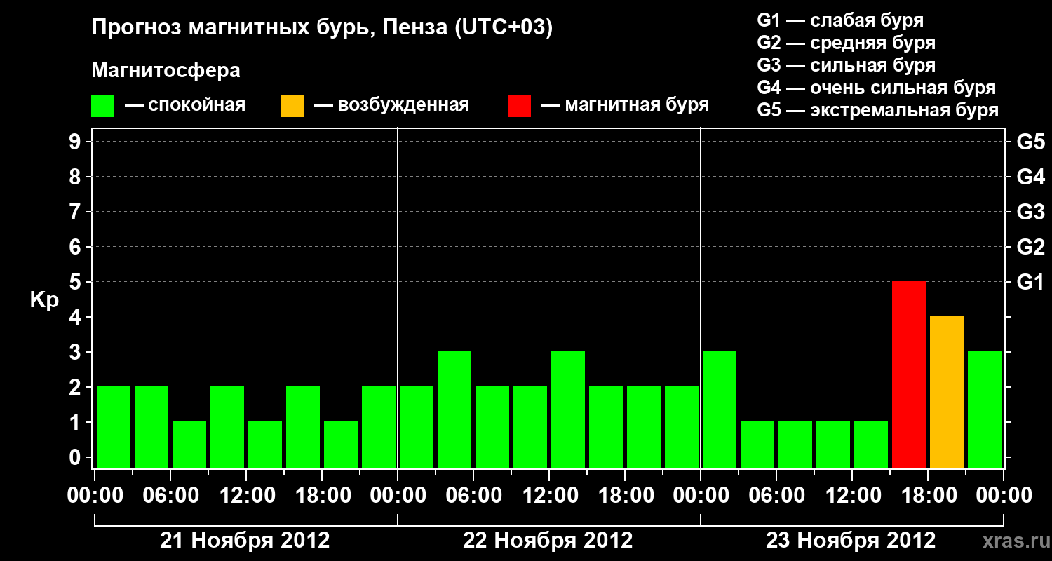 Прогноз магнитных бурь в Пензе — 21 ноября 2012 года