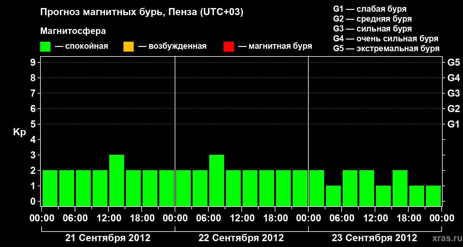Прогноз магнитных бурь в Пензе на 21 сентября 2012 года