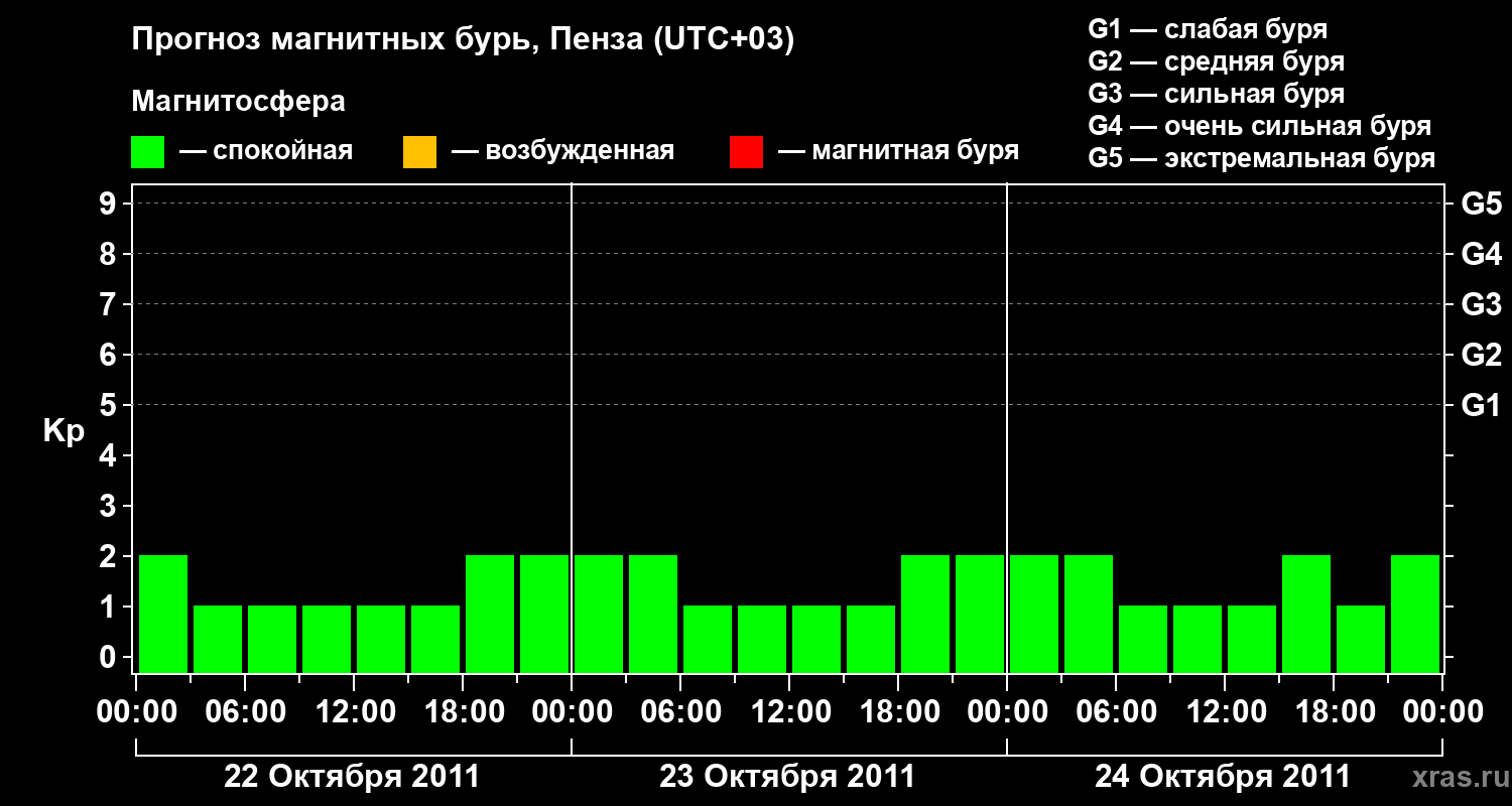 Прогноз магнитных бурь в Пензе — 22 октября 2011 года