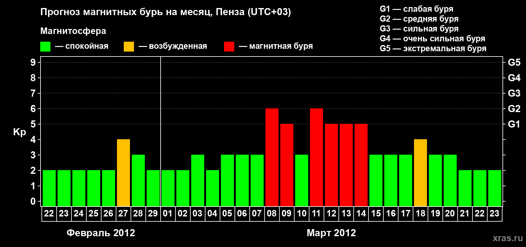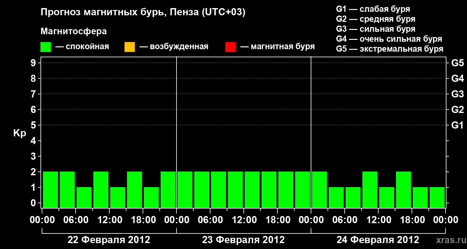Прогноз магнитных бурь в Пензе на 22 февраля 2012 года