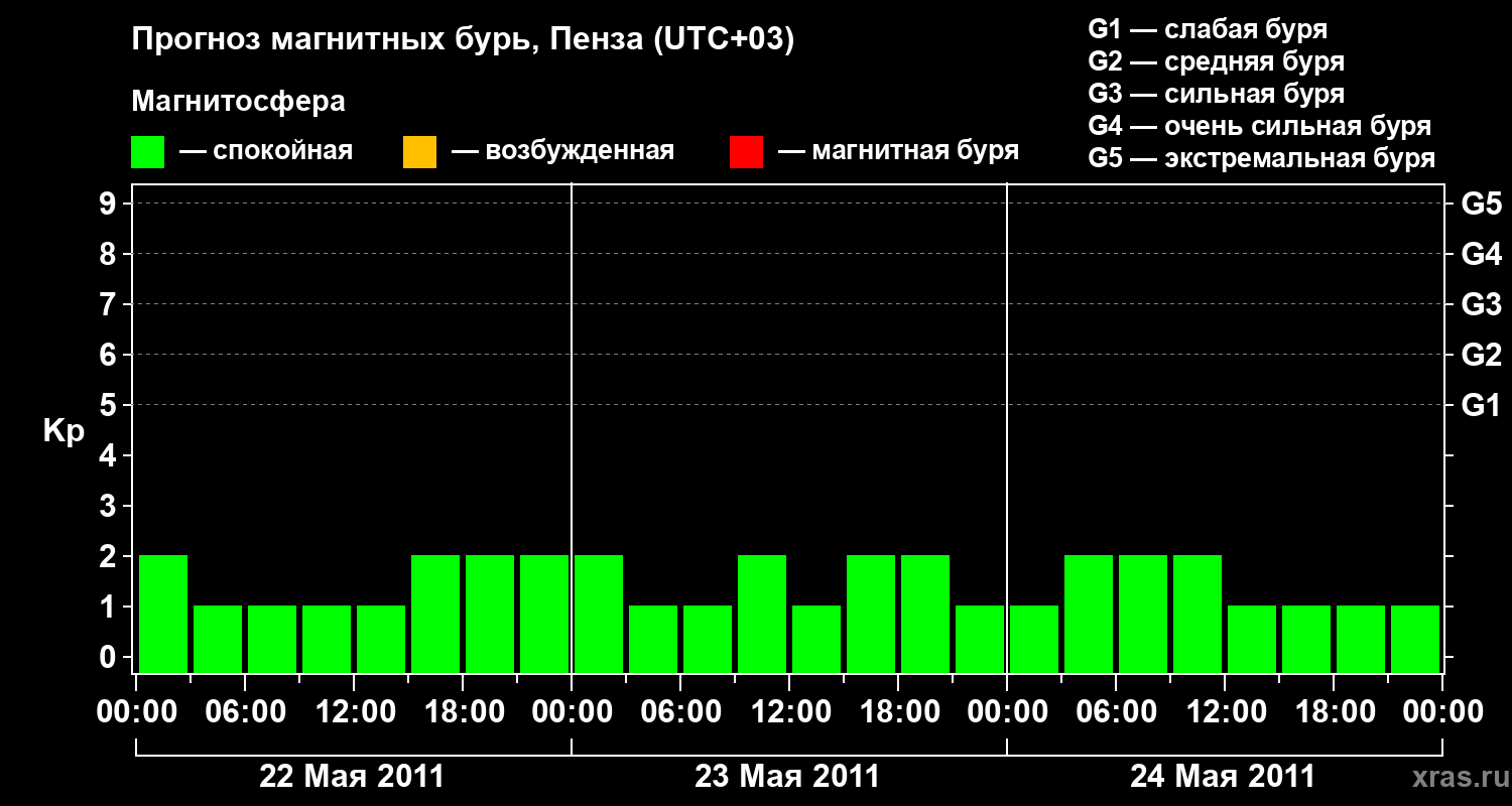 Прогноз магнитных бурь в Пензе — 22 мая 2011 года