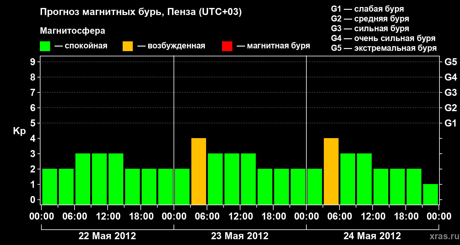 Прогноз магнитных бурь в Пензе — 22 мая 2012 года