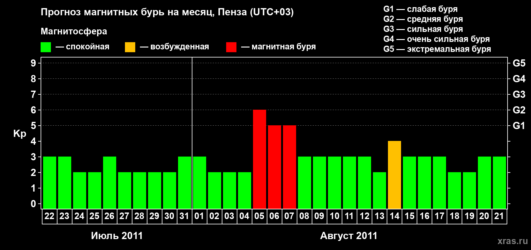 Прогноз магнитных бурь в Пензе — 22 июля 2011 года