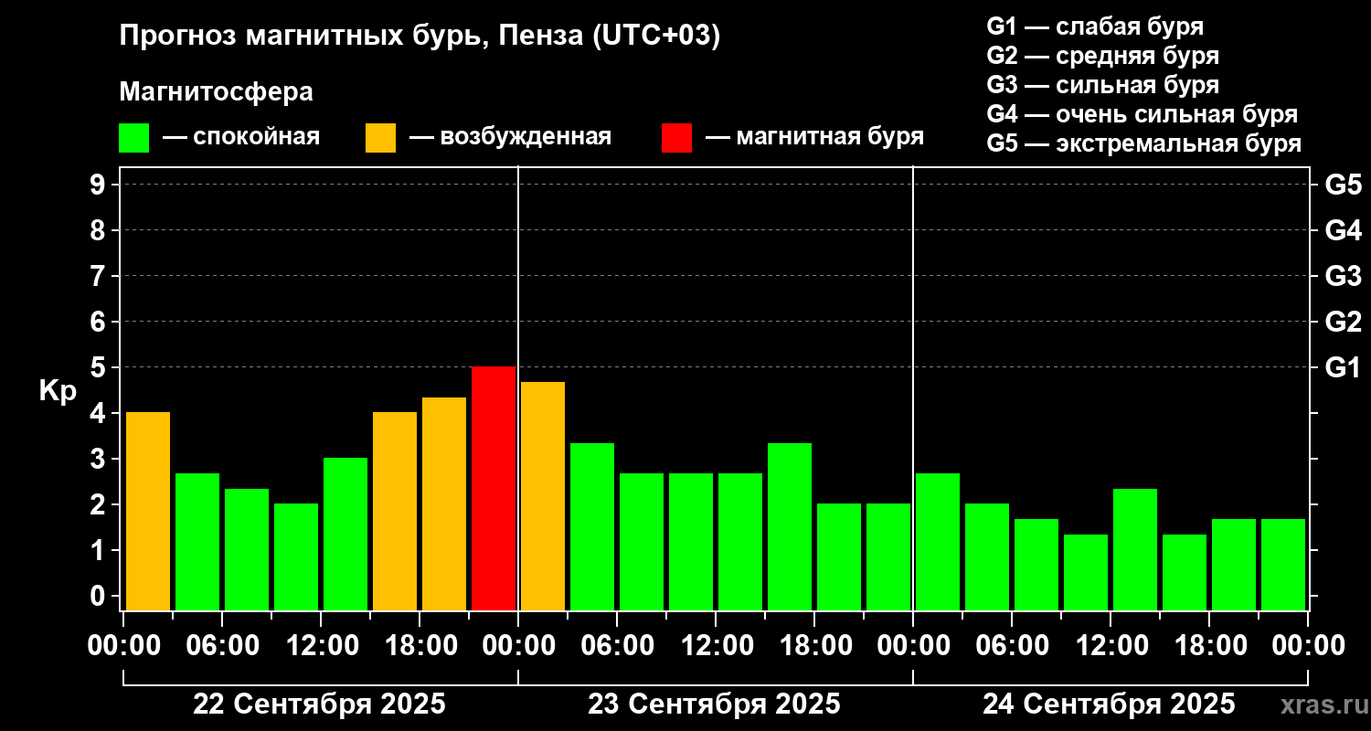 Прогноз магнитных бурь в Пензе — 22 сентября 2025 года