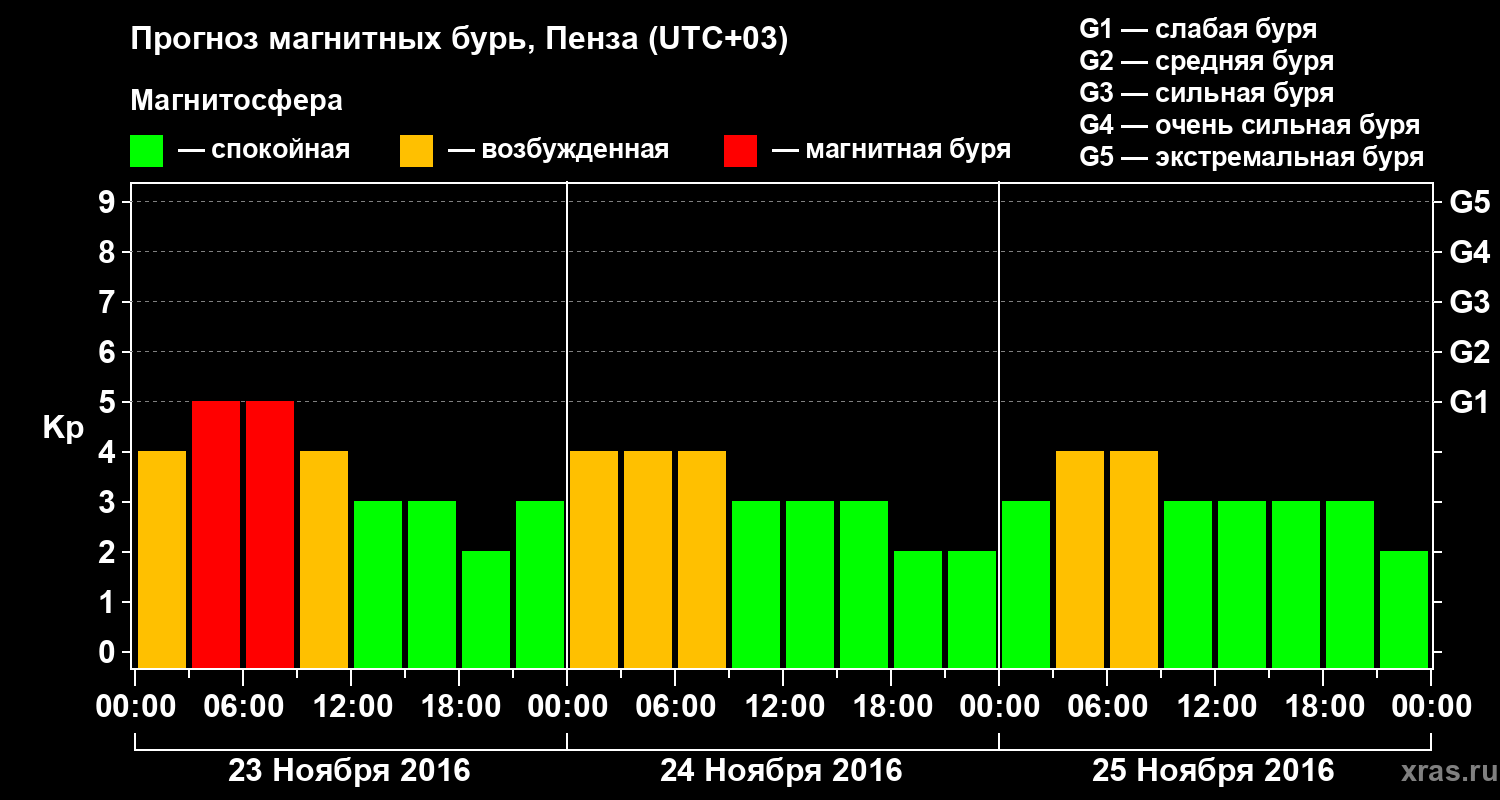 Прогноз магнитных бурь в Пензе — 23 ноября 2016 года