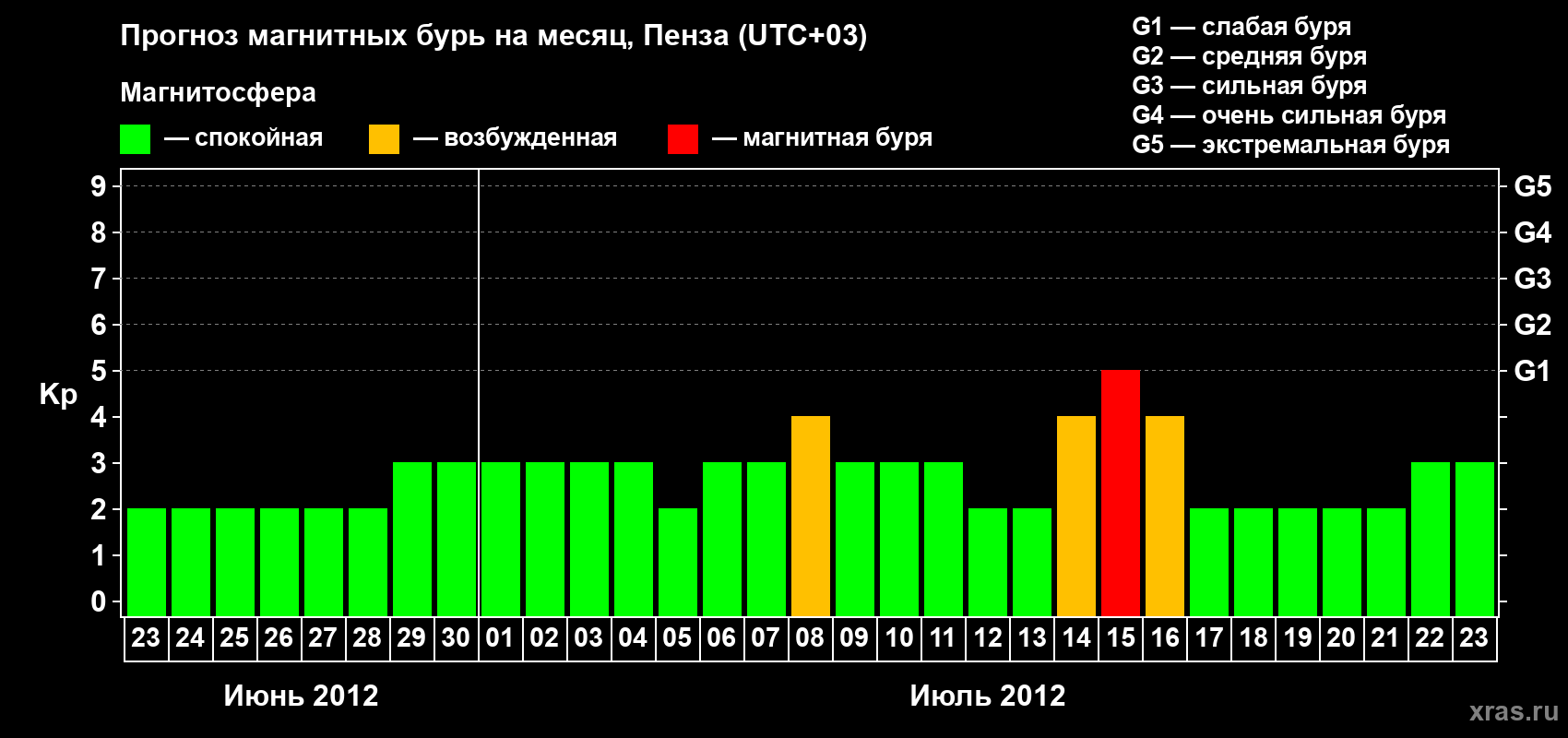 Прогноз магнитных бурь в Пензе — 23 июня 2012 года