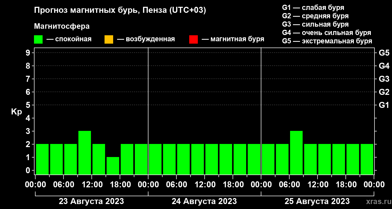 Прогноз магнитных бурь в Пензе на 23 августа 2023 года