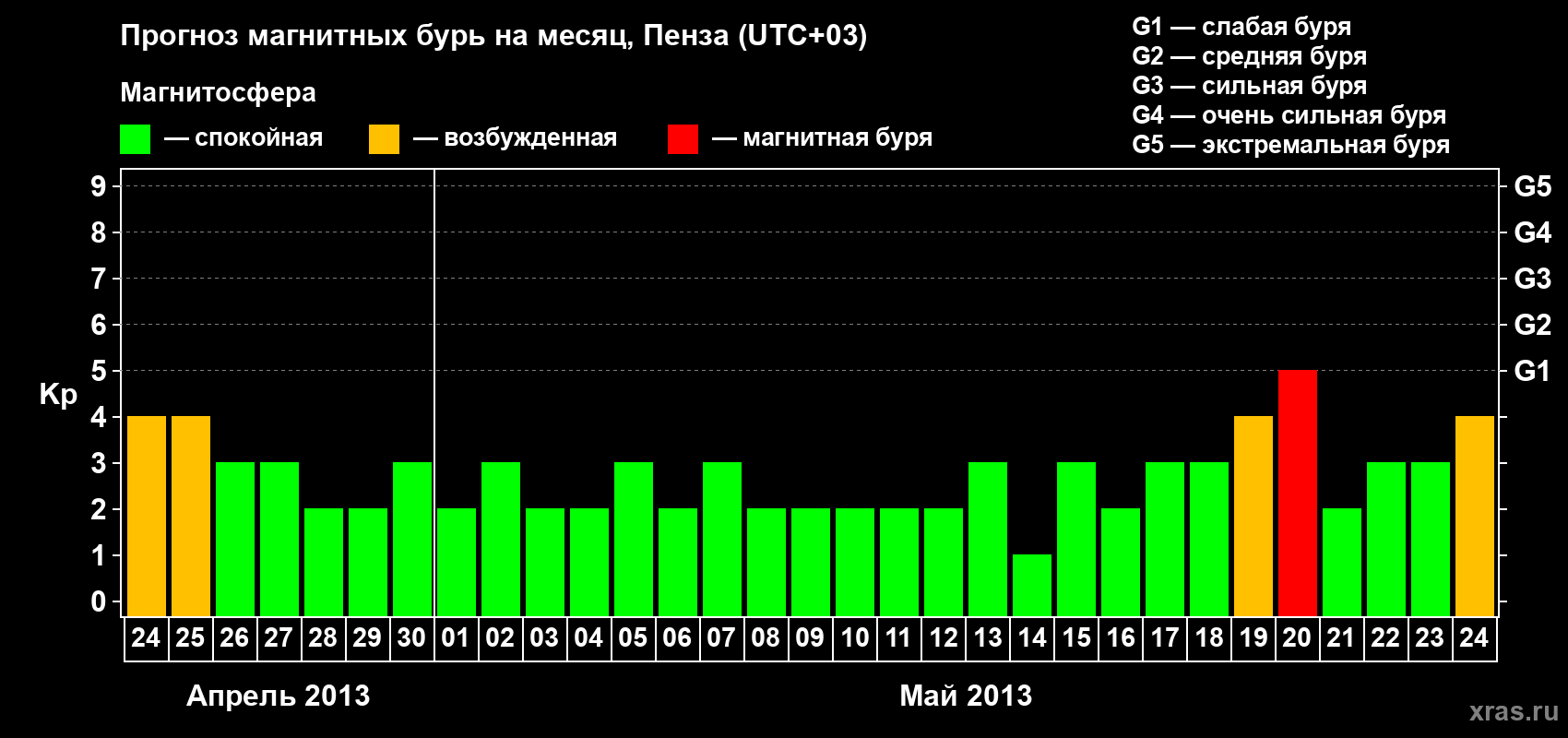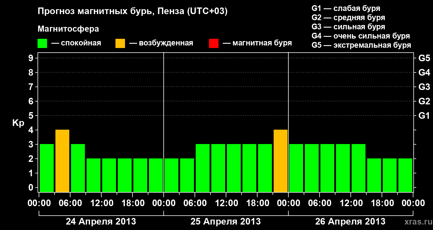 Прогноз магнитных бурь в Пензе — 24 апреля 2013 года
