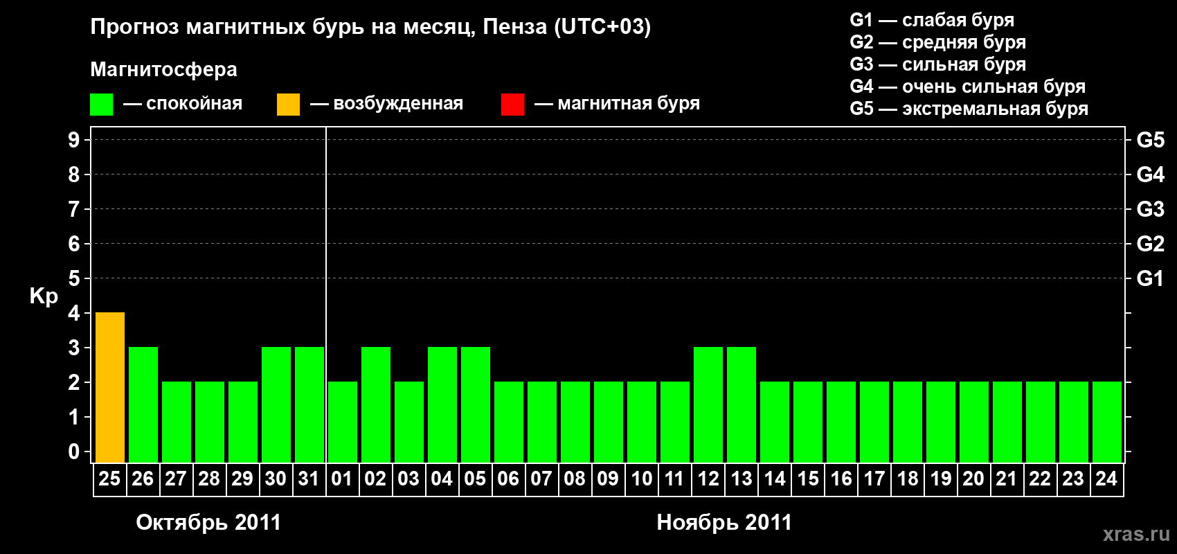 Прогноз магнитных бурь в Пензе — 25 октября 2011 года