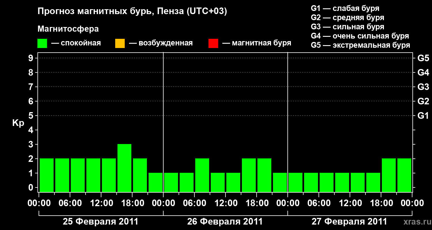 Прогноз магнитных бурь в Пензе — 25 февраля 2011 года