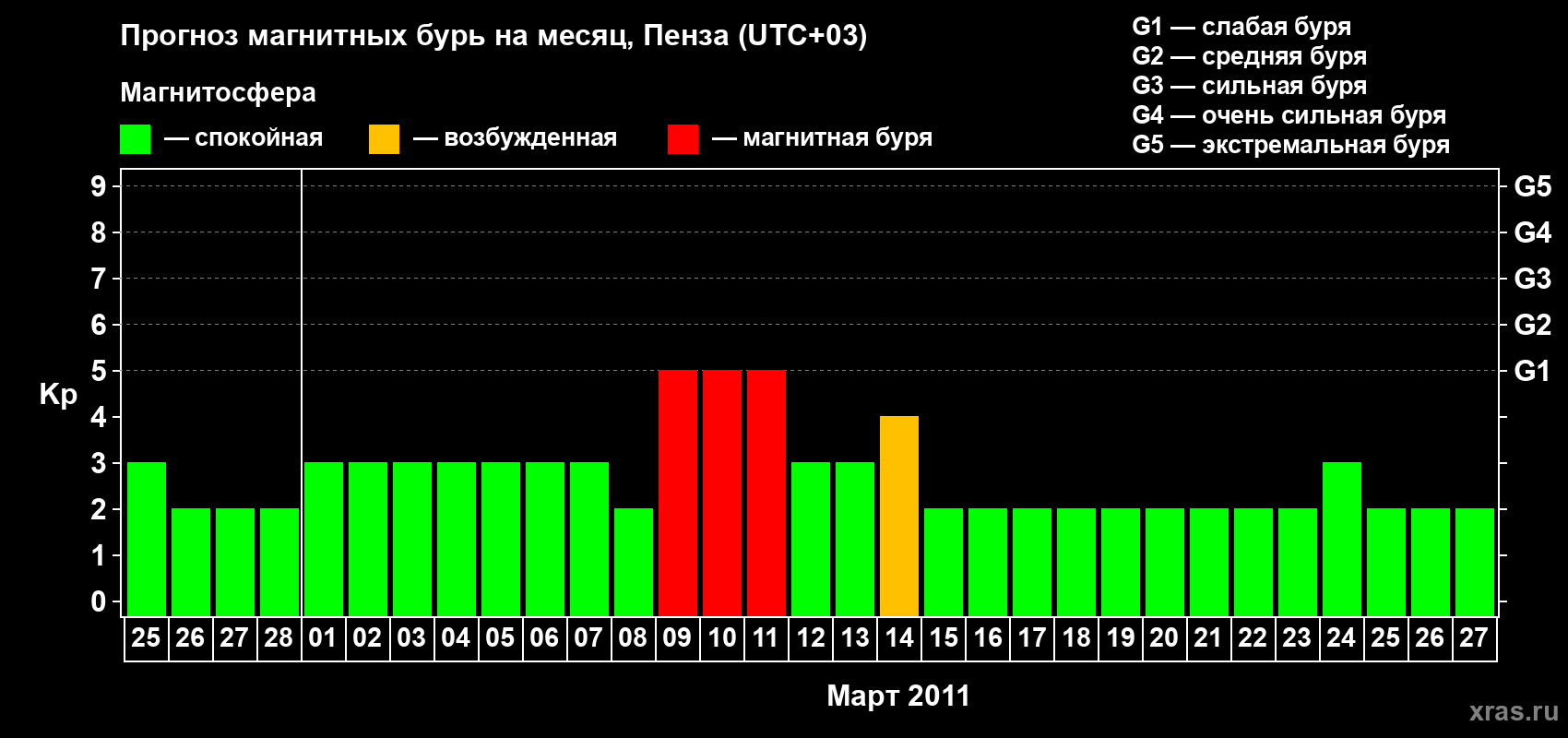 Прогноз магнитных бурь в Пензе на 25 февраля 2011 года