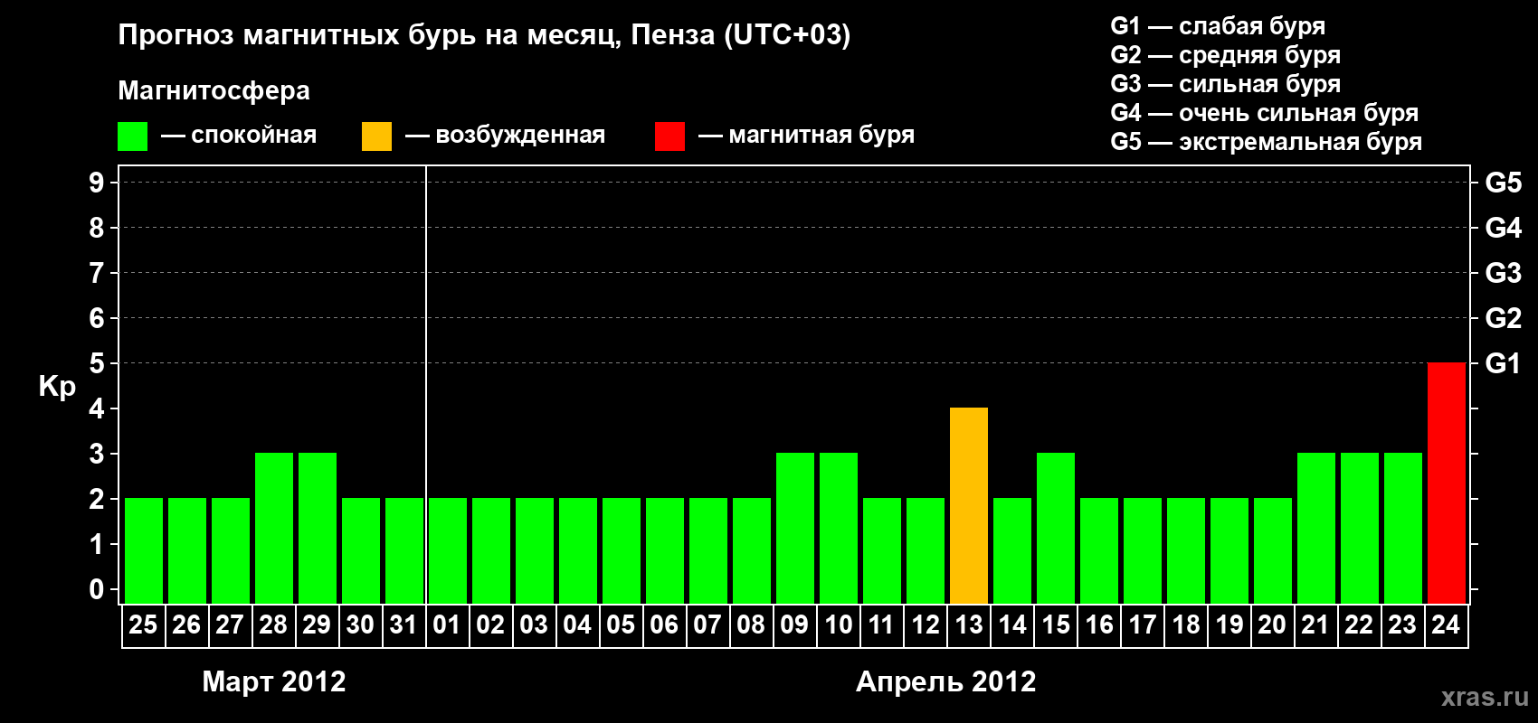 Прогноз магнитных бурь в Пензе — 25 марта 2012 года