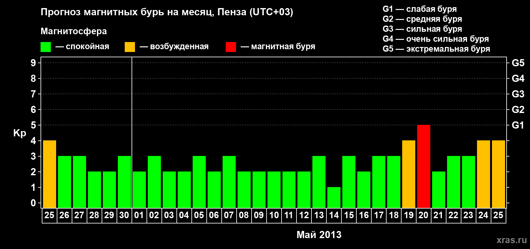 Прогноз магнитных бурь в Пензе — 25 апреля 2013 года