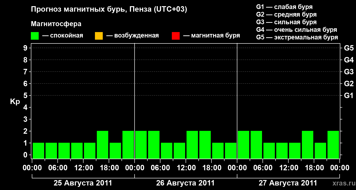Прогноз магнитных бурь в Пензе — 25 августа 2011 года