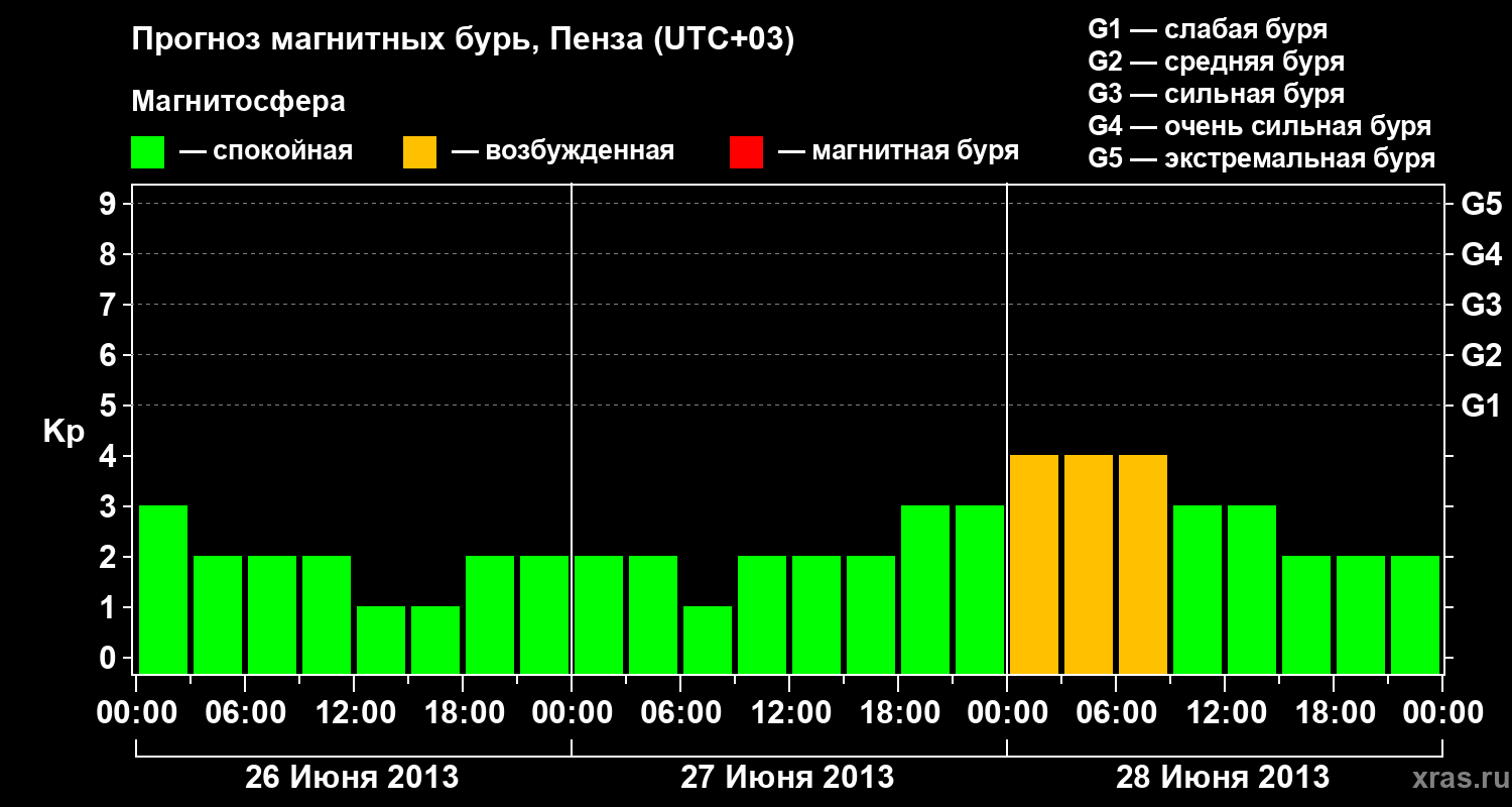Прогноз магнитных бурь в Пензе — 26 июня 2013 года
