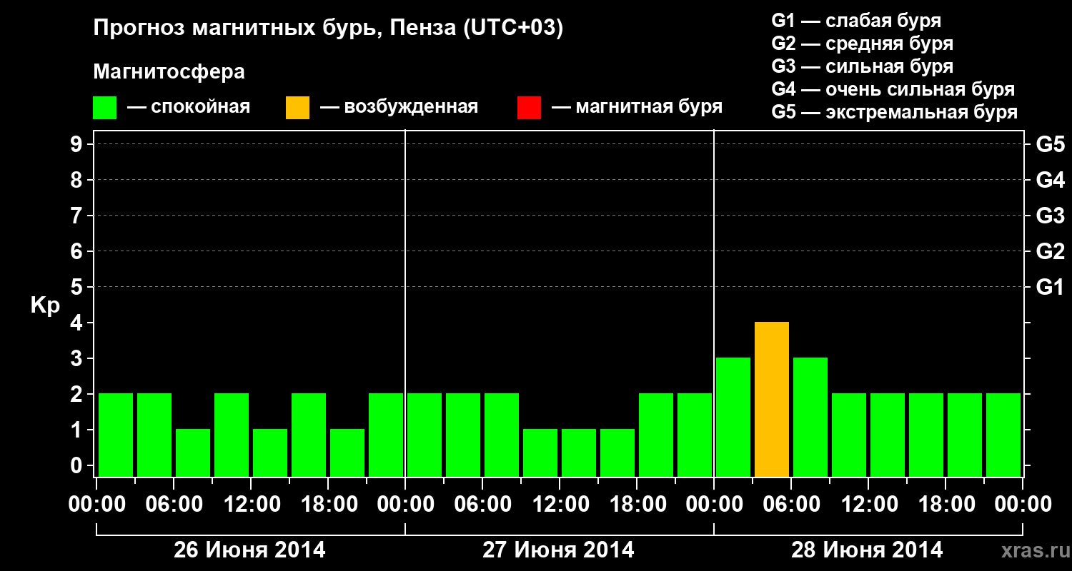 Прогноз магнитных бурь в Пензе на 26 июня 2014 года