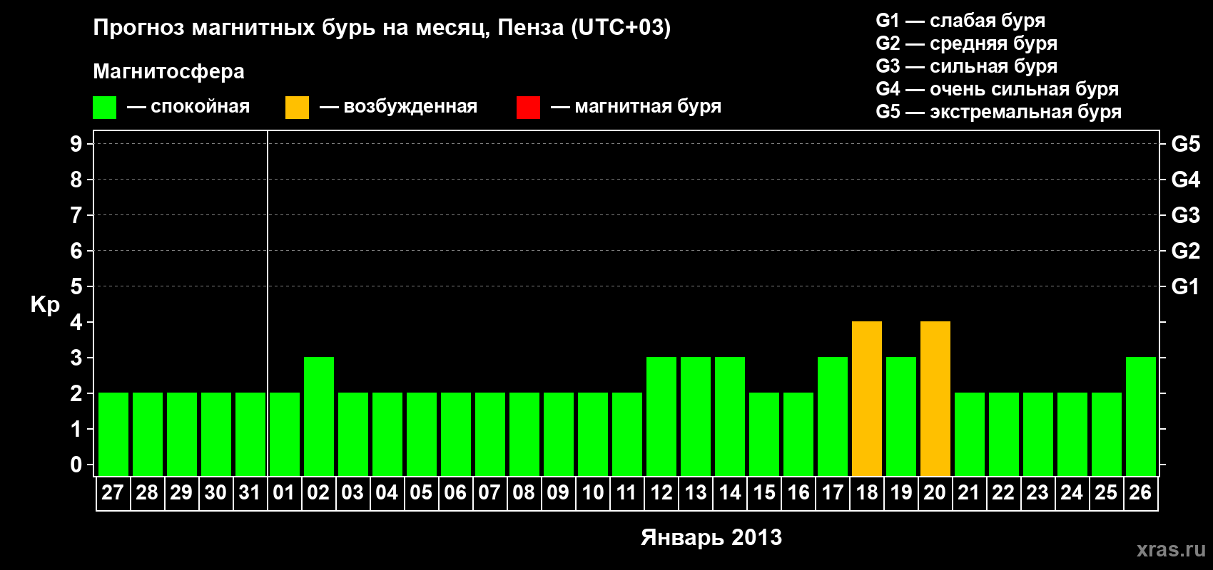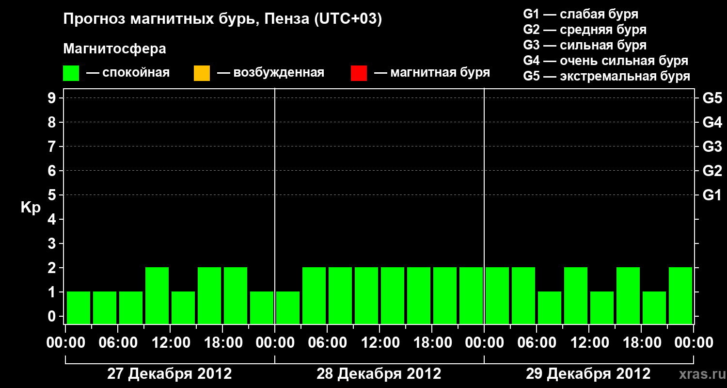 Прогноз магнитных бурь в Пензе — 27 декабря 2012 года