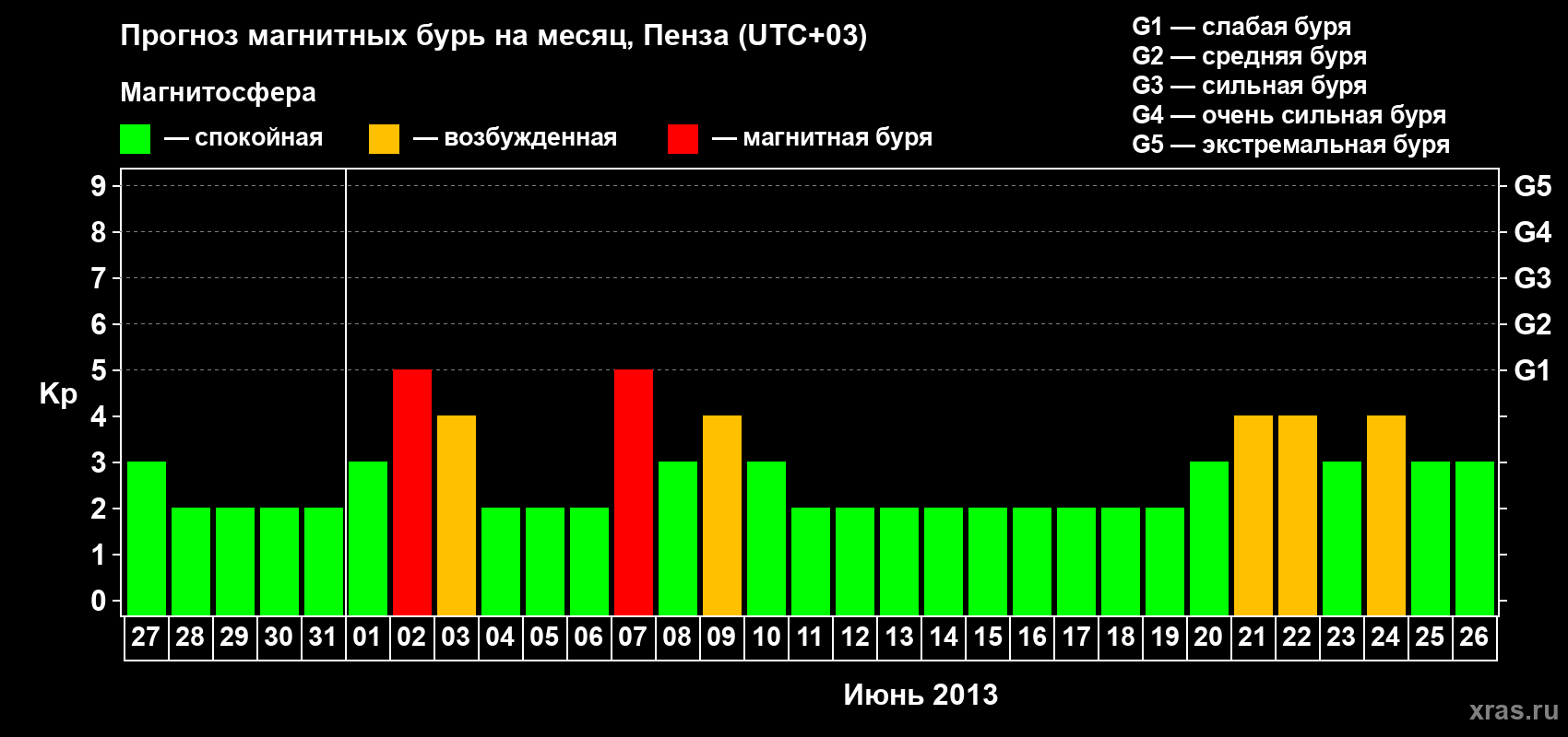 Прогноз магнитных бурь в Пензе на 27 мая 2013 года