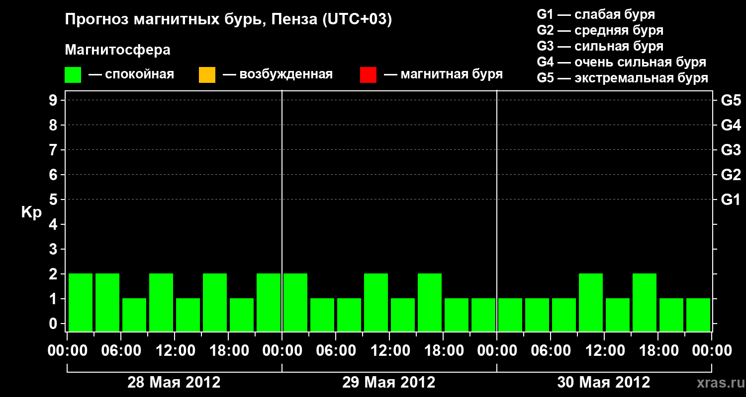Прогноз магнитных бурь в Пензе — 28 мая 2012 года