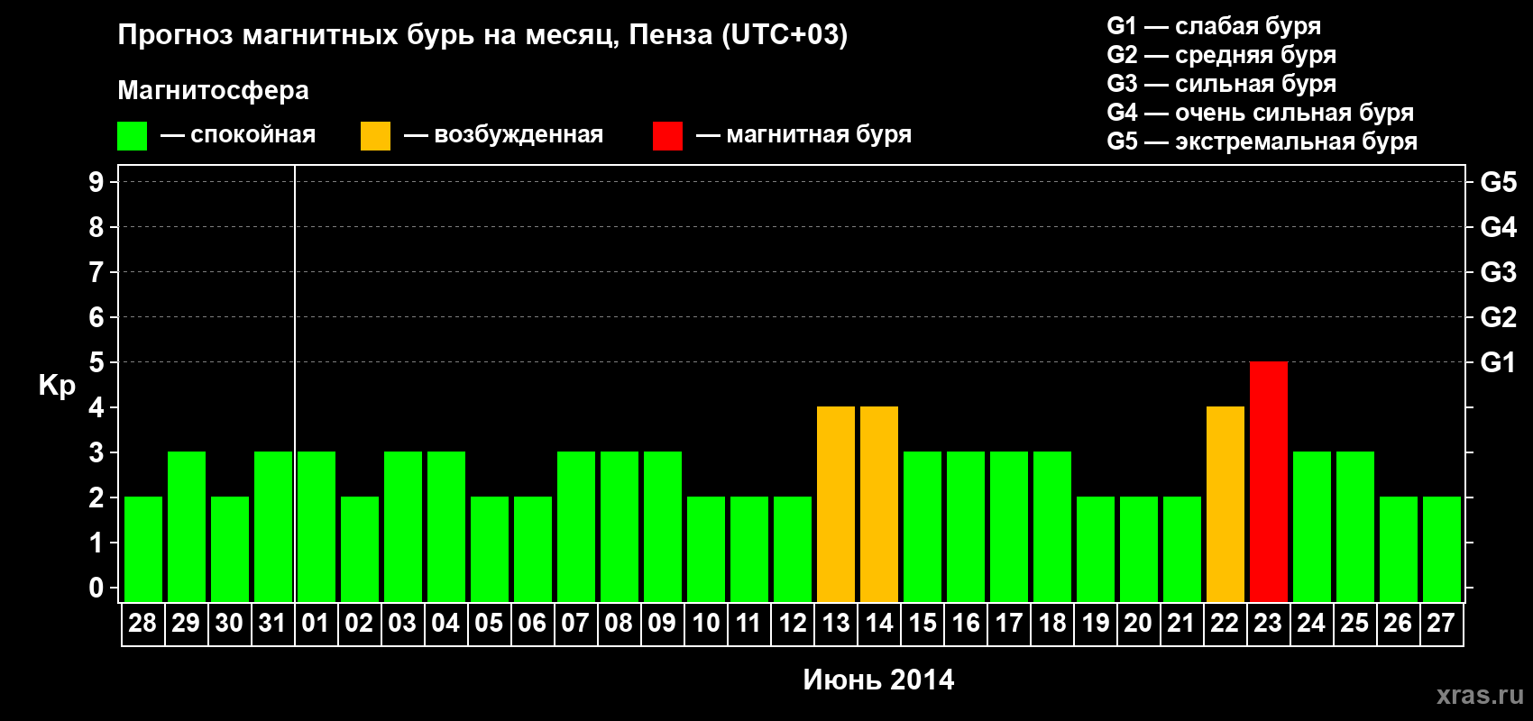 Прогноз магнитных бурь в Пензе на 28 мая 2014 года