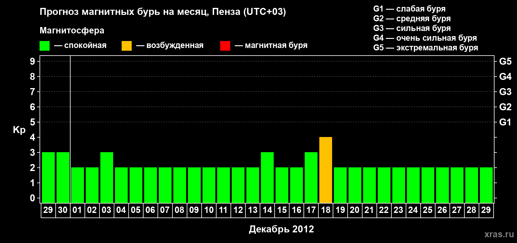 Прогноз магнитных бурь в Пензе — 29 ноября 2012 года