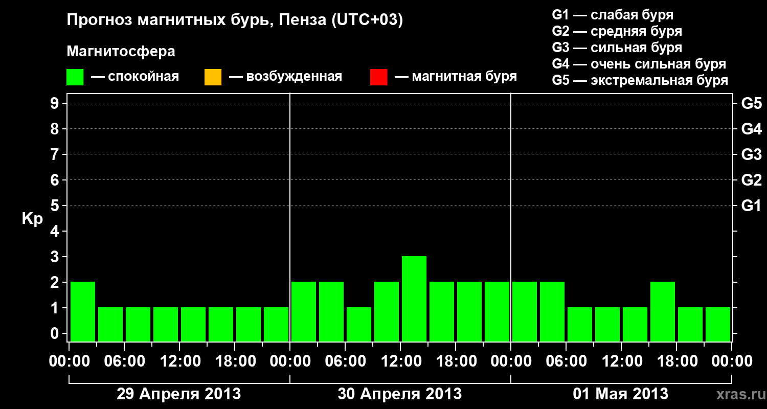 Прогноз магнитных бурь в Пензе — 29 апреля 2013 года