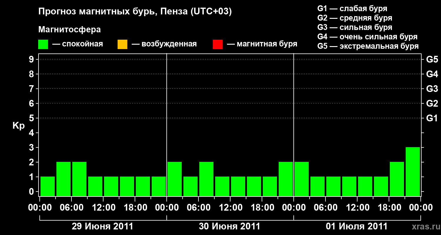 Прогноз магнитных бурь в Пензе — 29 июня 2011 года