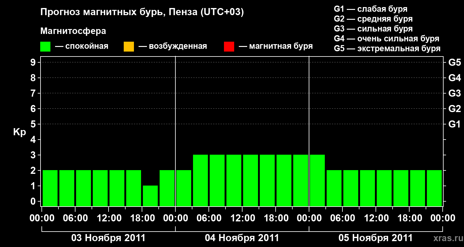 Прогноз магнитных бурь в Пензе — 3 ноября 2011 года
