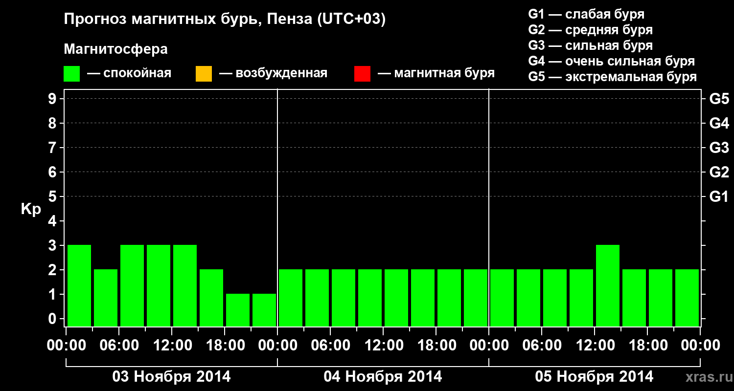 Прогноз магнитных бурь в Пензе — 3 ноября 2014 года