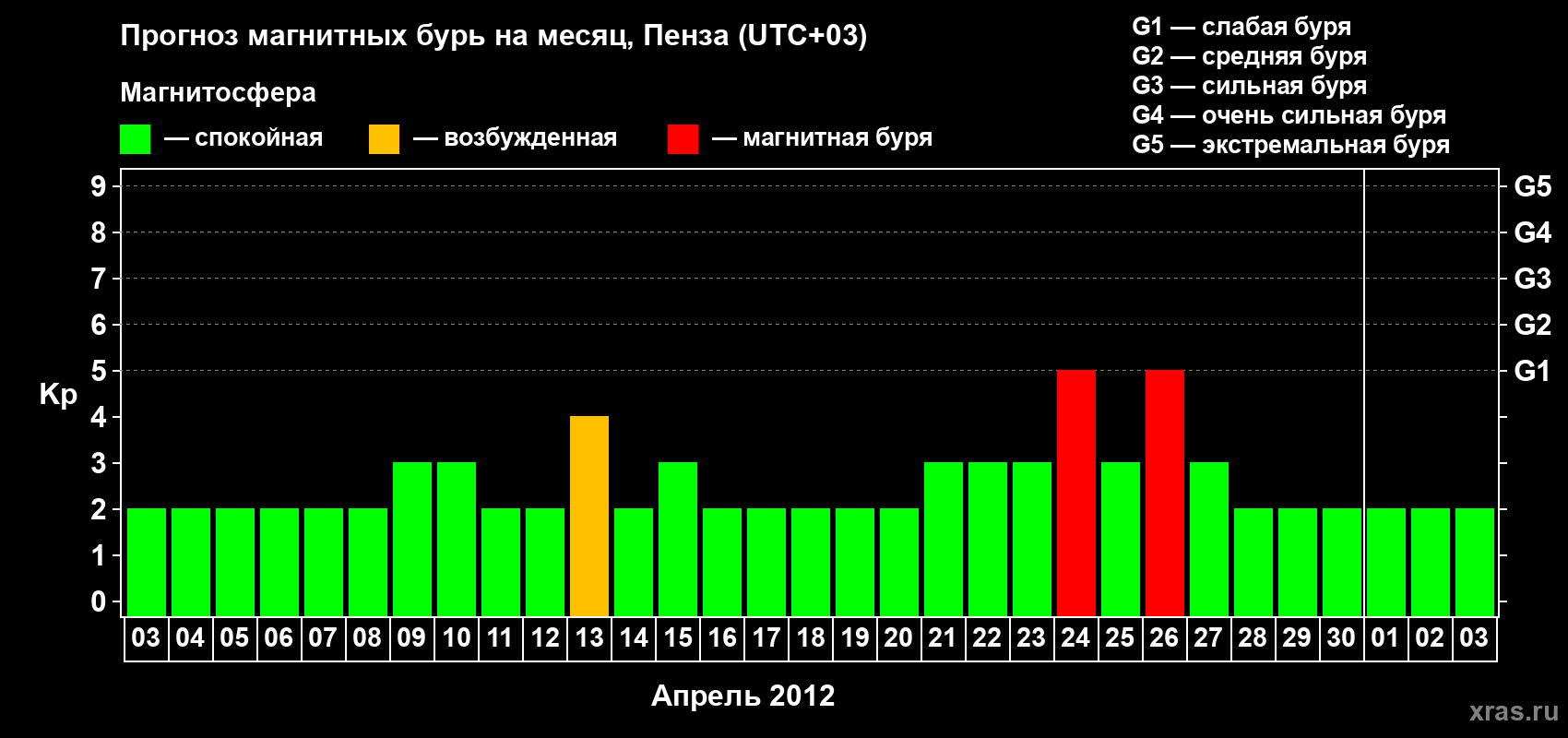 Прогноз магнитных бурь в Пензе — 3 апреля 2012 года