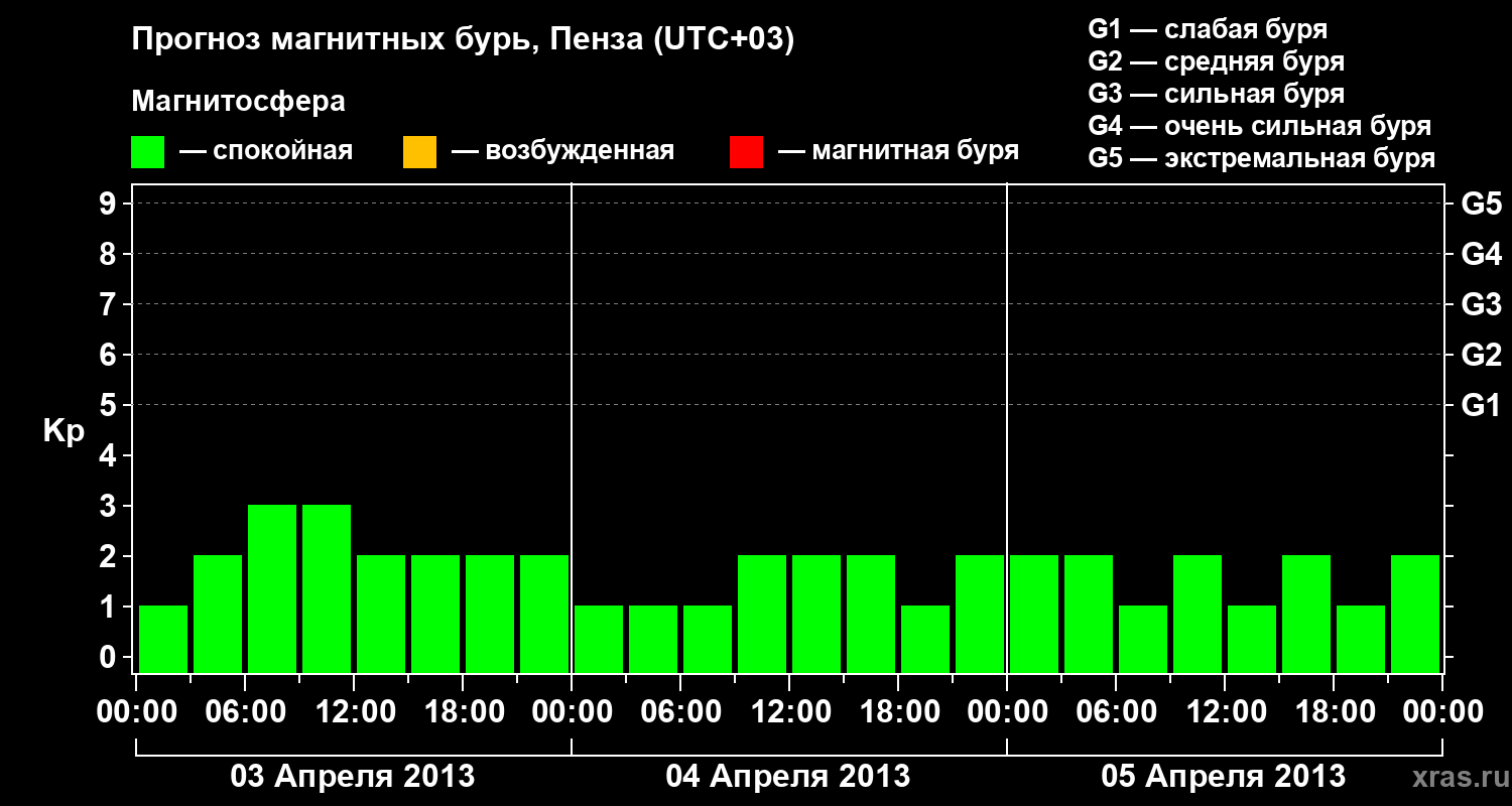Прогноз магнитных бурь в Пензе — 3 апреля 2013 года