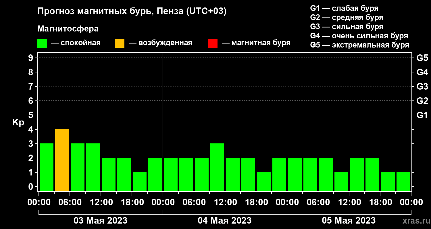 Прогноз магнитных бурь в Пензе — 3 мая 2023 года