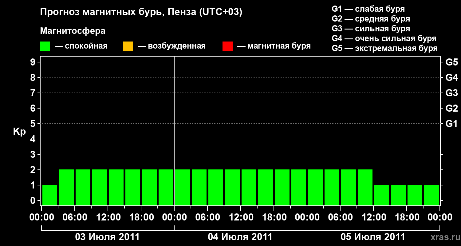 Прогноз магнитных бурь в Пензе — 3 июля 2011 года