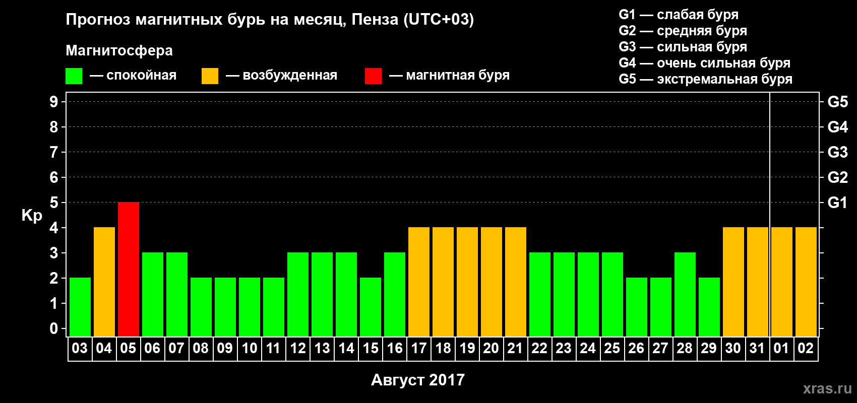 Прогноз магнитных бурь в Пензе — 3 августа 2017 года