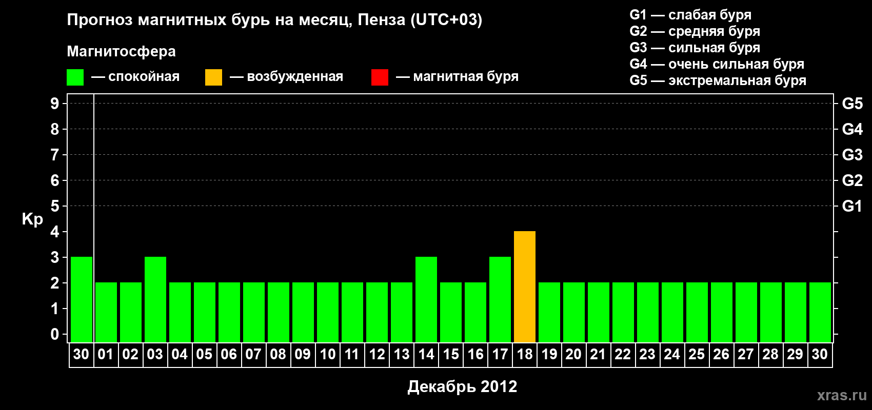 Прогноз магнитных бурь в Пензе — 30 ноября 2012 года