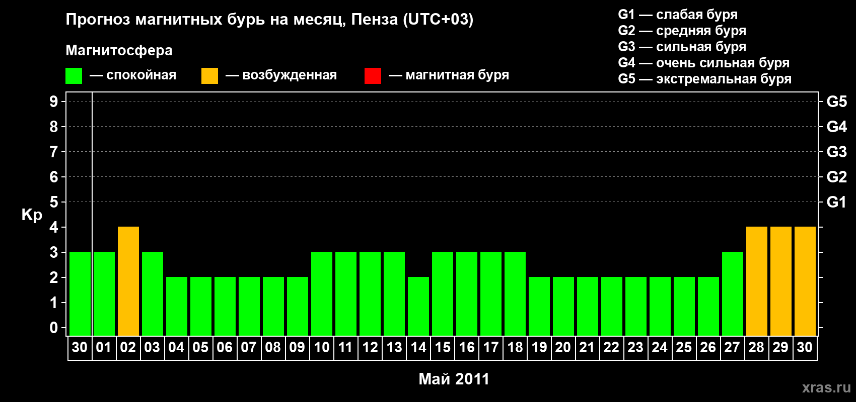 Прогноз магнитных бурь в Пензе — 30 апреля 2011 года