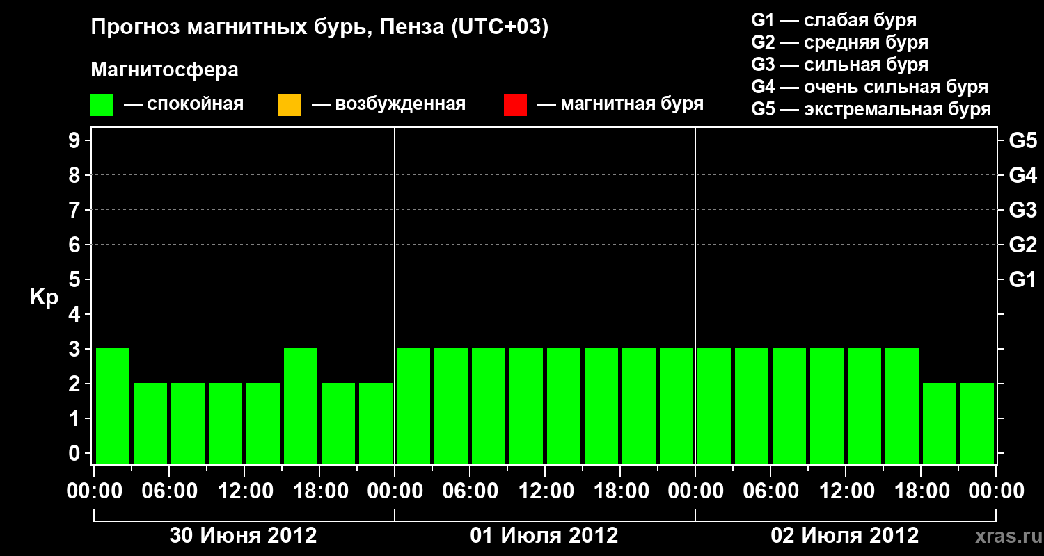 Прогноз магнитных бурь в Пензе — 30 июня 2012 года
