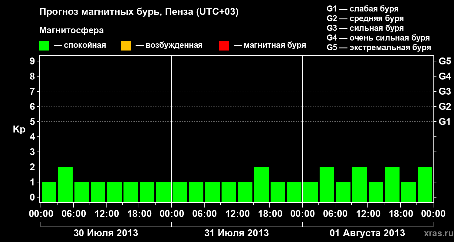 Прогноз магнитных бурь в Пензе — 30 июля 2013 года