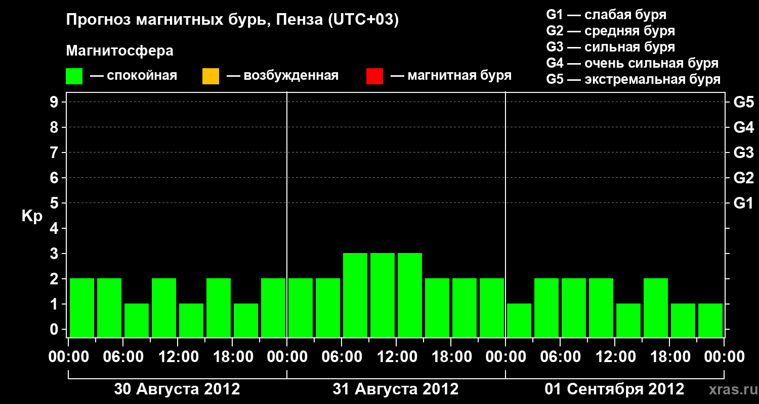 Прогноз магнитных бурь в Пензе — 30 августа 2012 года