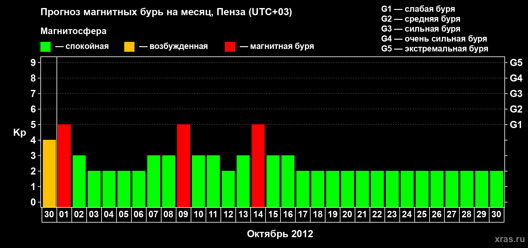 Прогноз магнитных бурь в Пензе на 30 сентября 2012 года