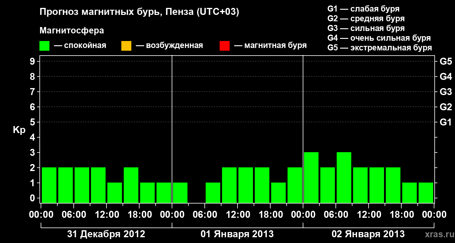 Прогноз магнитных бурь в Пензе на 31 декабря 2012 года