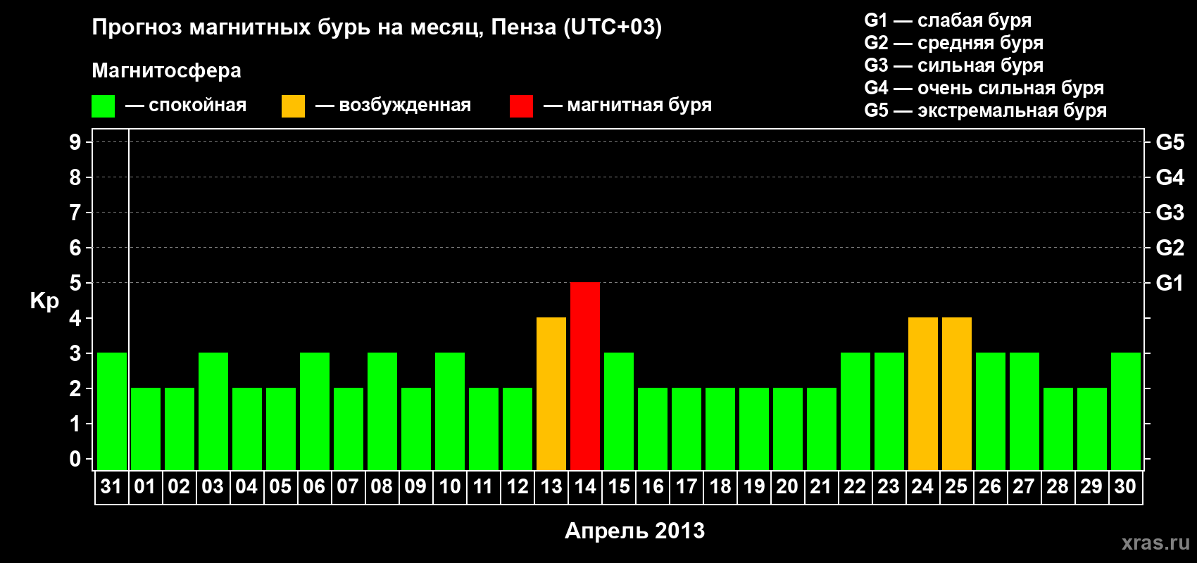 Прогноз магнитных бурь в Пензе — 31 марта 2013 года