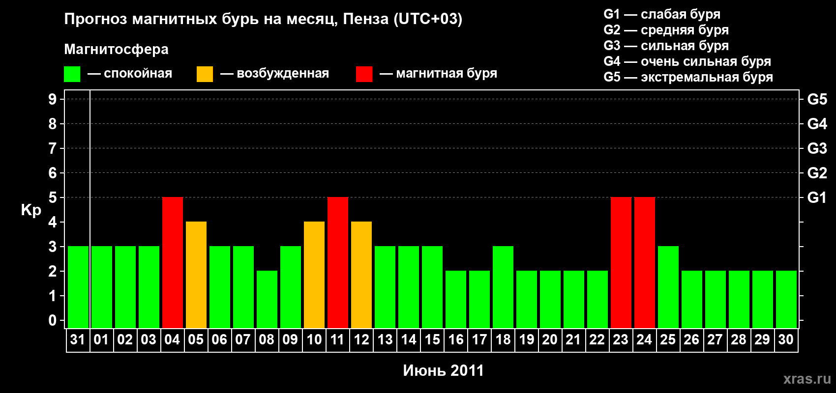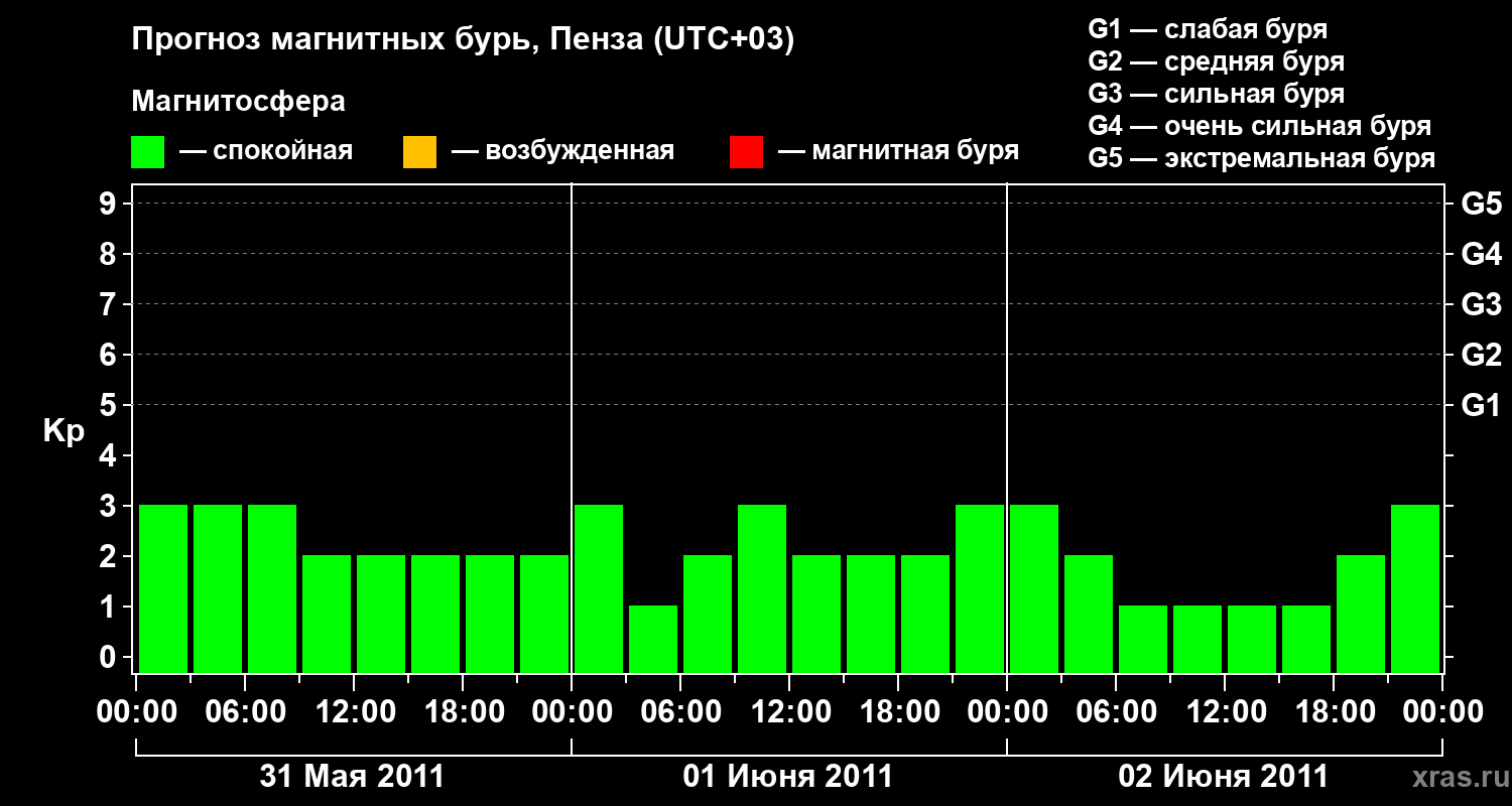 Прогноз магнитных бурь в Пензе — 31 мая 2011 года