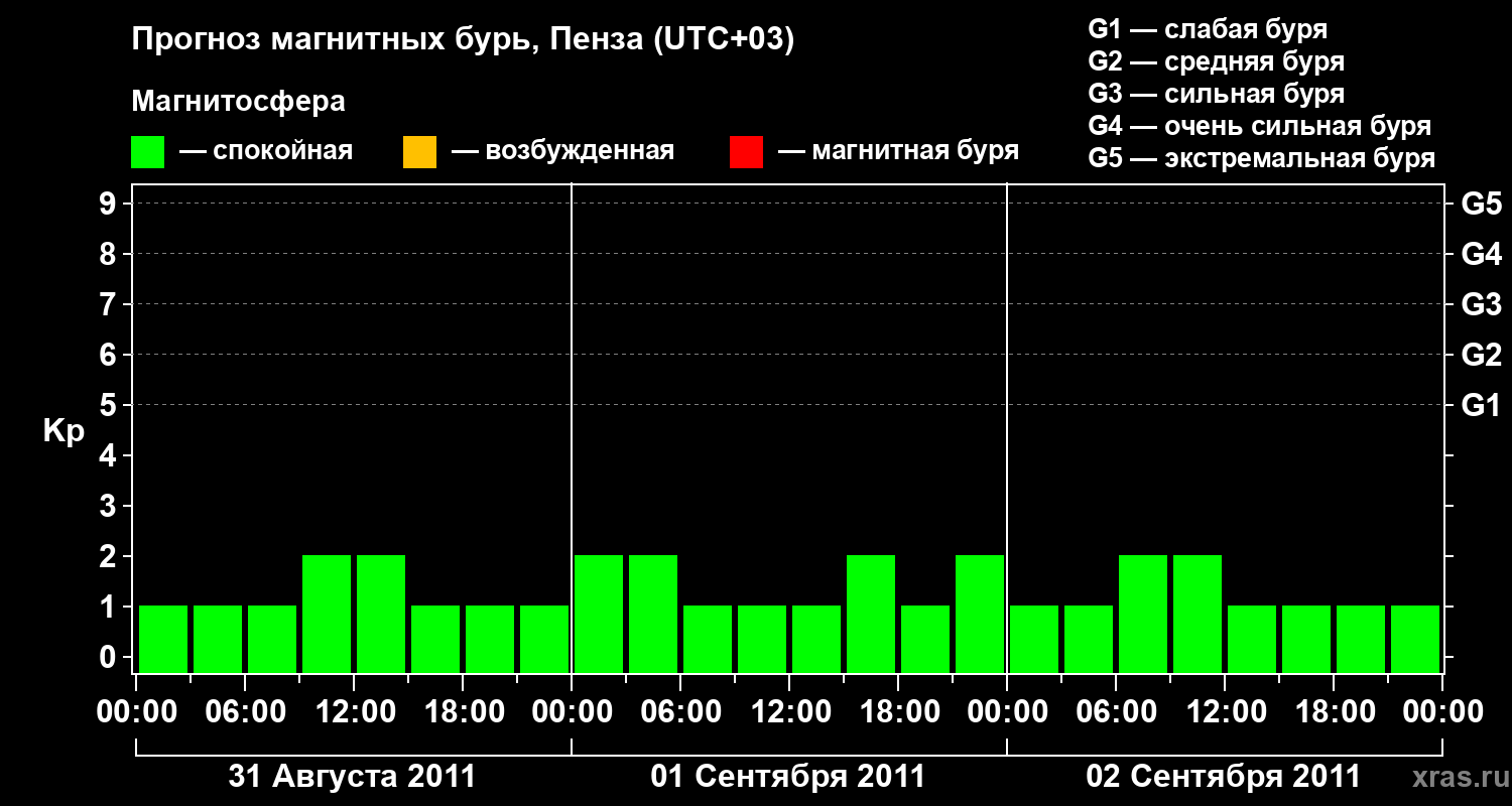 Прогноз магнитных бурь в Пензе — 31 августа 2011 года