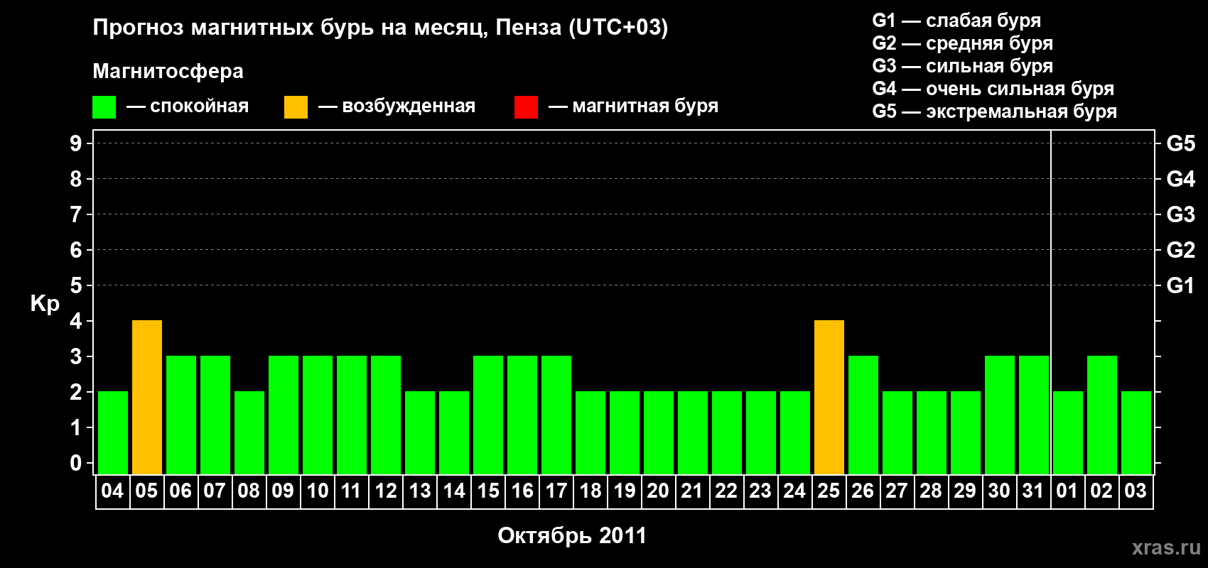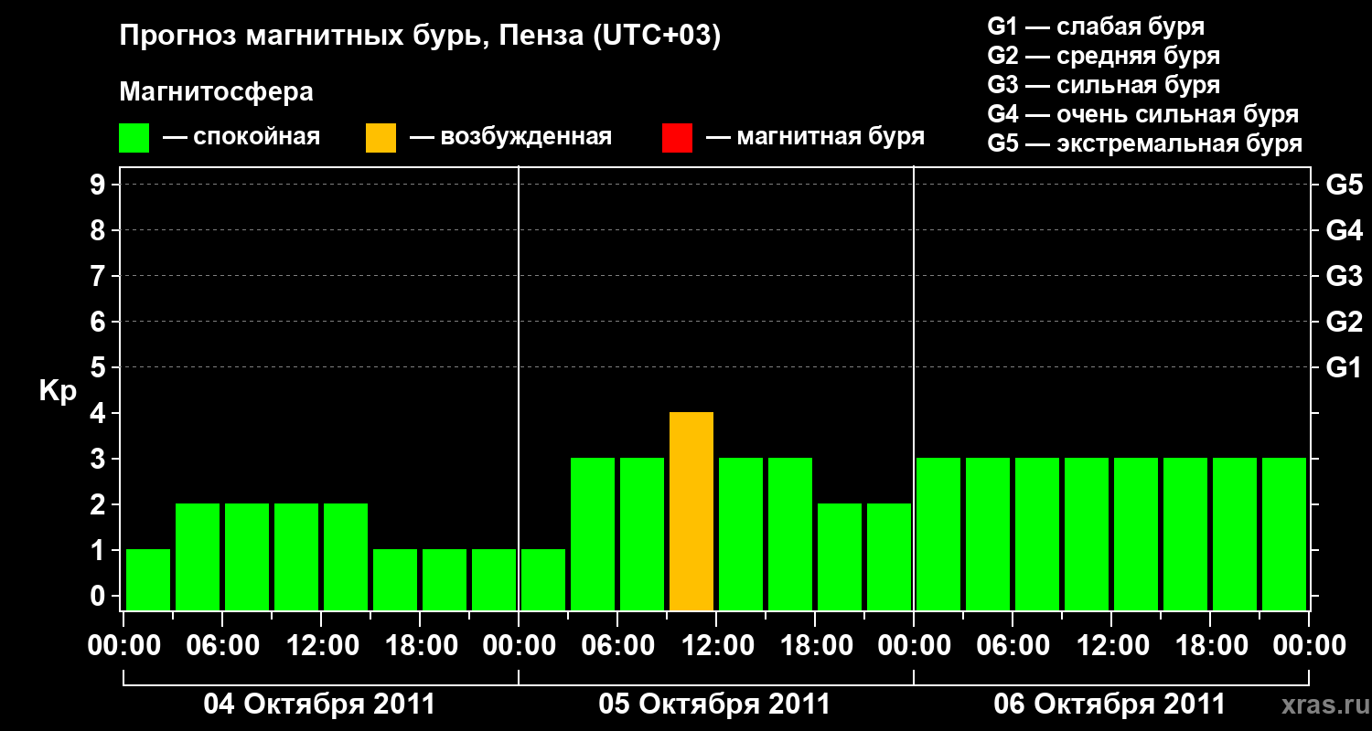 Прогноз магнитных бурь в Пензе — 4 октября 2011 года