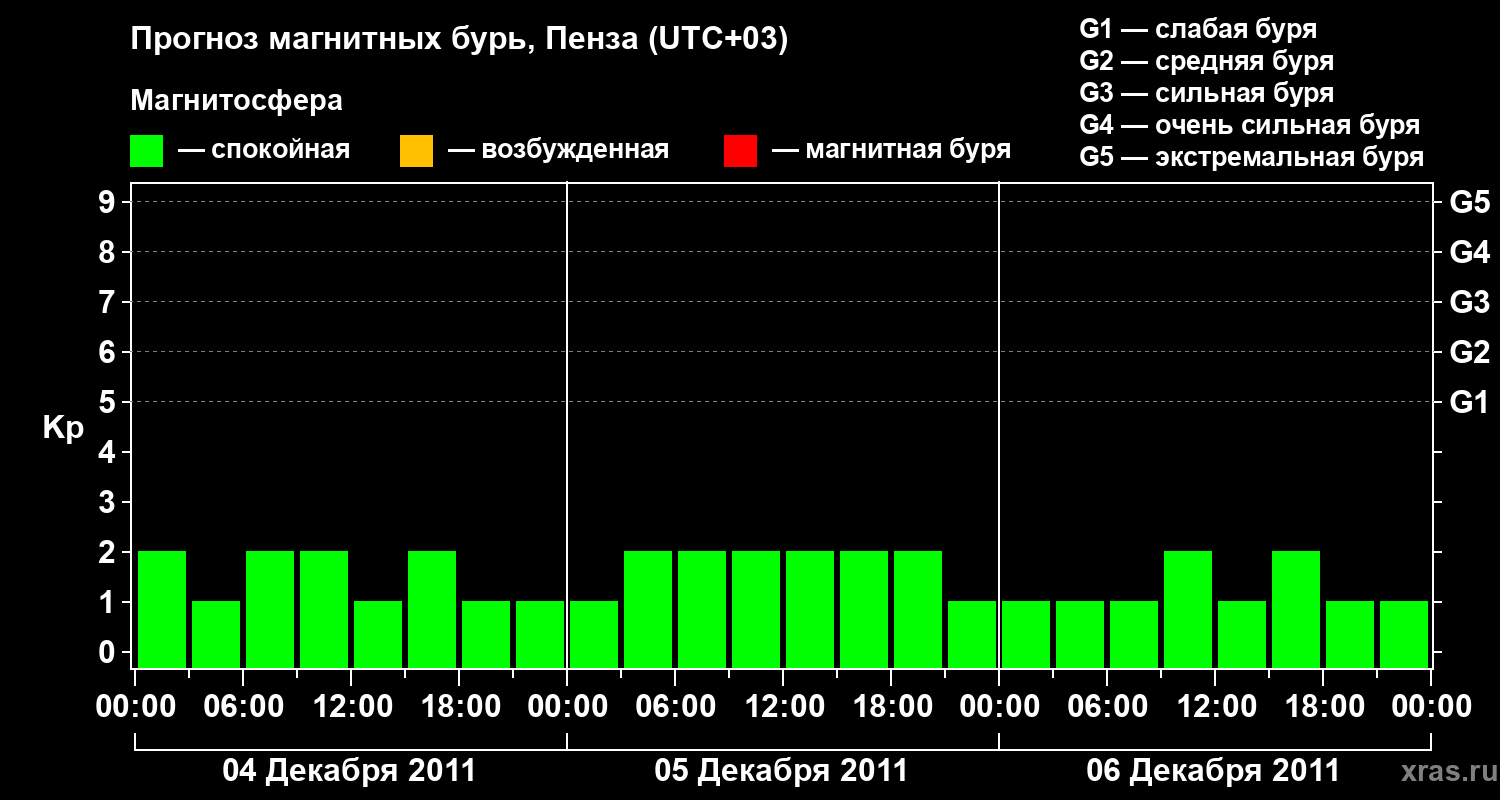Прогноз магнитных бурь в Пензе на 4 декабря 2011 года
