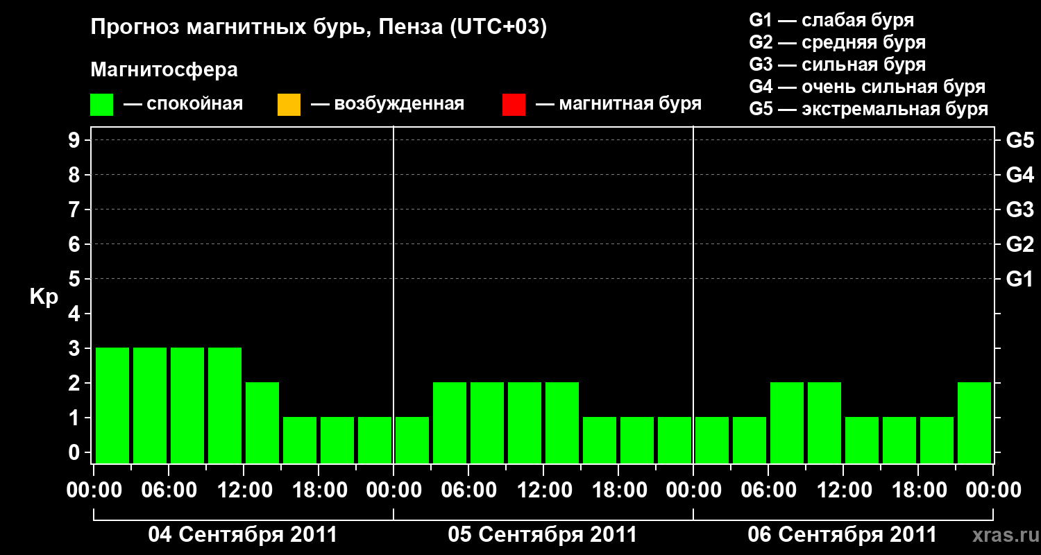 Прогноз магнитных бурь в Пензе — 4 сентября 2011 года