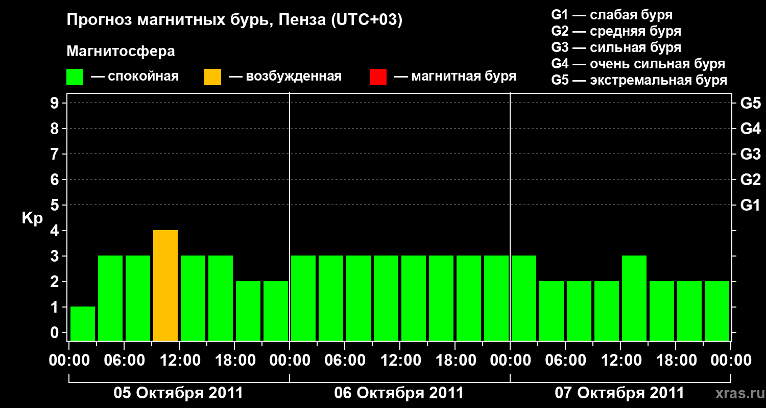 Прогноз магнитных бурь в Пензе — 5 октября 2011 года