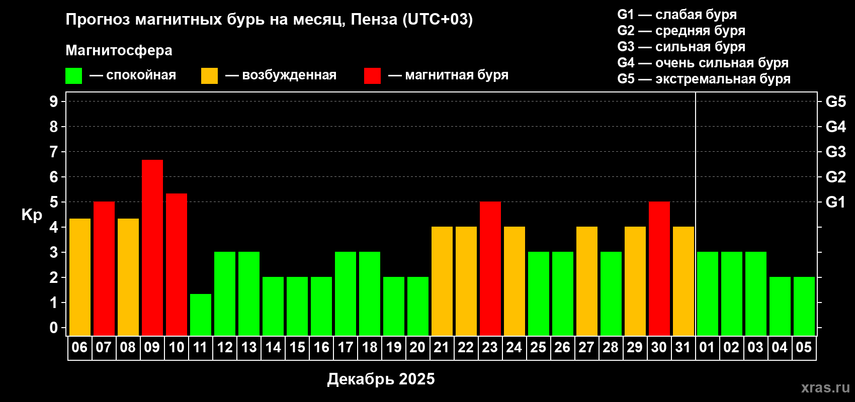 Прогноз магнитных бурь в Пензе — 6 декабря 2025 года